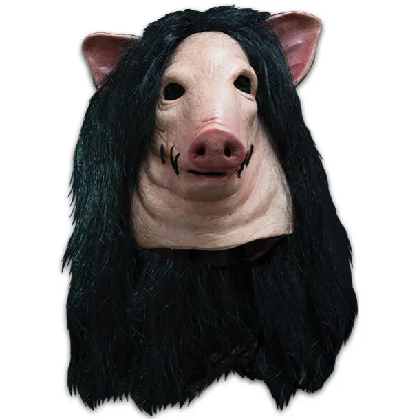 Trick or Treat Studios is proud to present the officially licensed, Saw – Pig Mask! Sculpted by the artist that sculpted a number of the characters from Universal Studios Halloween Horror Nights – Saw Maze and using countless screen shots. Every detail of the amazing Saw Pig is represented in this mask, including a stitched mouth, with real thread stitches, professional quality long black hair wig, and a blood soaked back with protruding bone. Get yourself our Saw – Pig Mask and Jigsaw Costume *sold separately* and ask Trick or Treaters if they want to play a game this Halloween Night!