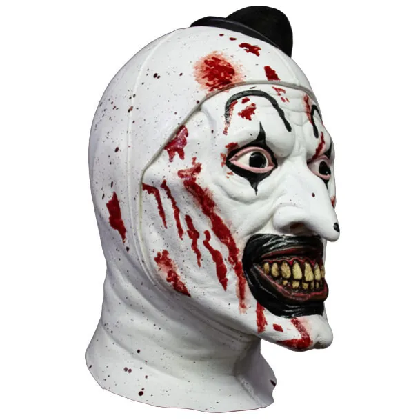 Trick or Treat Studios is proud to present the officially licensed, Terrifier – Killer Art the Clown Mask! This amazing mask has every detail of the makeup worn by Art the Clown in the Cult Classic, Terrifier, including his crazy eyes, pointy nose, maniacal grin and bloody face. Order your Terrifier – Art the Clown Mask today and terrify the neighborhood this Halloween!